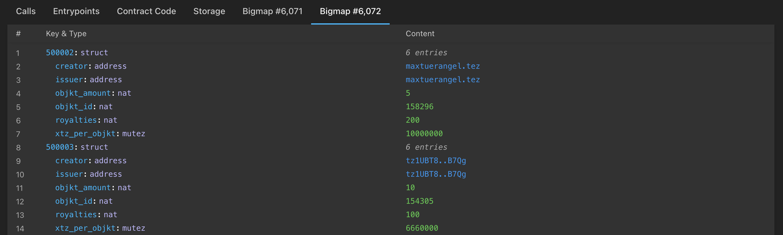 Here you have access to the content of your storage with the type of each variable and its current value. Notice that the content excludes big_maps as they are specific tabs for them.