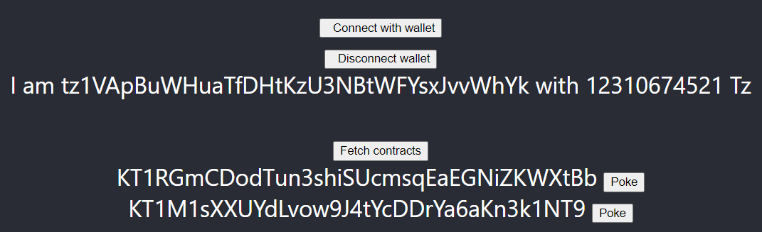 with the one below, it adds a Poke button.{contracts.map((contract) => <div>{contract.address} <button onClick={() =>poke(contract)}>Poke</button></div>)}